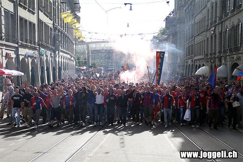 Ultras do Basileia em cortejo até ao estádio do adversário...