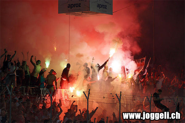 Ultras do St.Gallen a darem algum espectáculo com a pirotecnia...
