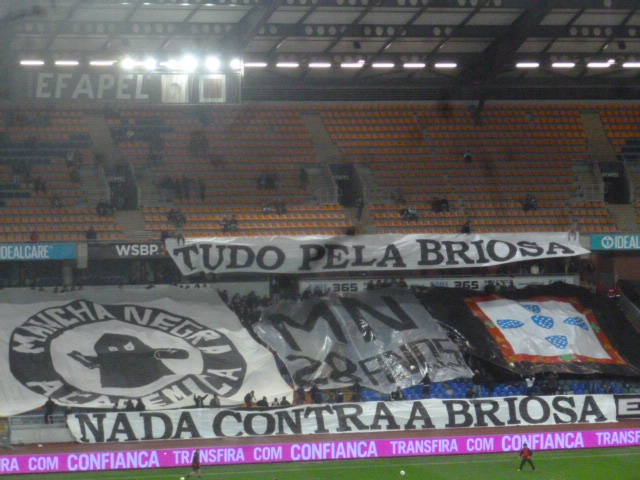 Para um jogo a uma segunda-feira ás 18h15(horário proíbido para muitos adeptos quer do Vitória quer da Académica... mais uma prova da falta de respeito que liga, sportv, dirigentes etc têm para com os adeptos) caso para dizer que não foi nada mau, pelo contrário... nos grupos vitorianos destaque para as muitas frases com vários destinos mostradas ao longo do jogo... e para o bom apoio durante os 90 minutos... da parte dos visitantes boa deslocação da Mancha Negra tendo em conta o horário e dia do jogo... entraram com a equipa já a perder, ainda abriram uma tocha... e pareceram bem activos ao longo do jogo apesar de não os ter conseguido ouvir o que é normal quando fazemos a nossa parte...